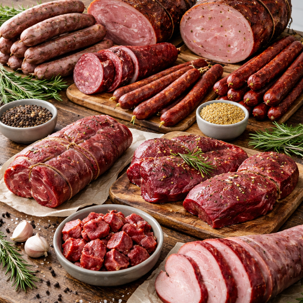 Entdecken Sie die Vielfalt unserer handwerklich veredelten Wildfleischprodukte – von Bratenstücken bis zu hausgemachten Wurstkreationen, alles mit regionalem Ursprung und höchster Qualität.